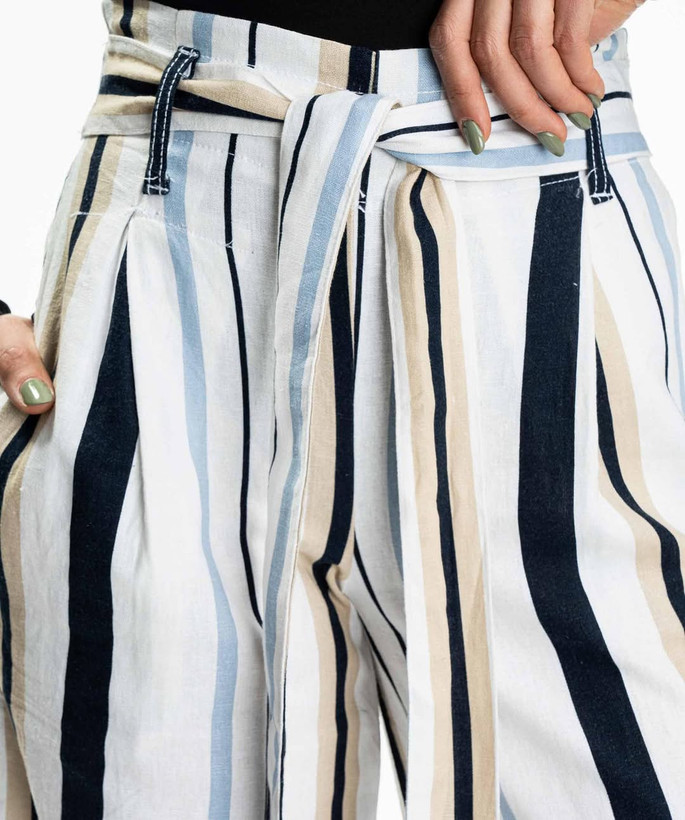 جنس الیاف: 100% نخ پنبه نرمی و زبری: نرم ضخامت: کم جزئیات مدل: کمر کشی، دارای پل کمر و کمربند، چاک بلند در قسمت دمپا قد شلوار: مناسب برای سایز XS، حدود 100 سانتی متر مدل با قد 165 سانتی متر و وزن 52 کیلوگرم و سایز XS پوشیده است. طرح راهراه جنس پارچه نخپنبه نحوه بستهشدن کشی جیب دارد قواره Loose Fit (آزاد) ارتفاع فاق متوسط (22-28) نوع شستشو دستی/ماشینی نحوه شستشو به صورت مجزا یا با رنگهای مشابه ماکزیمم دمای شستشو 30 درجه سانتیگراد ماکزیمم دمای اتوکشی 110 درجه سانتیگراد مناسب برای بانوان مناسب برای فصول گرم برند سولا تک سایز M
